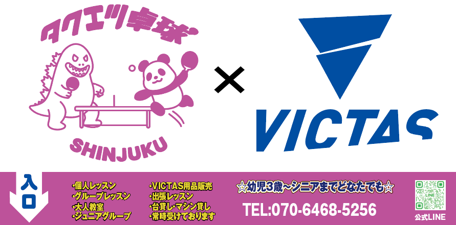 タクエツ卓球新宿店は2026年04月12日、卓球メーカーVICTAS契約卓球場第2号店としてオープン致しました。